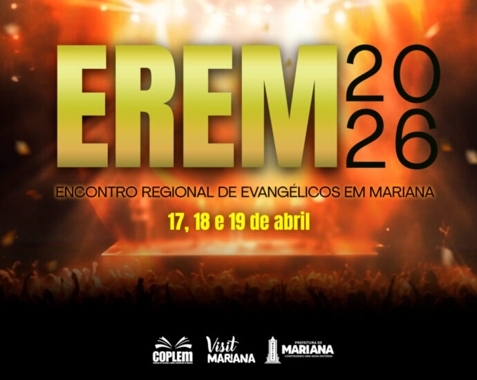Mariana recebe, a partir da próxima sexta-feira, 17 de abril, a 20ª edição do Encontro Regional de Evangélicos em Mariana (EREM). A Praça Tancredo Neves será mais uma vez o palco para a realização do evento, que leva o público da cidade a momentos de fé e adoração. O evento,