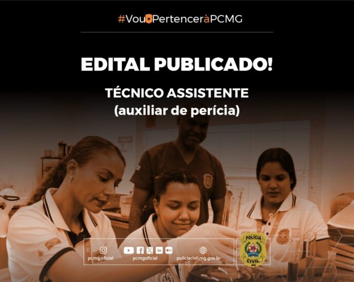 Publicado edital da PCMG com 104 vagas para técnico assistente 2025-11-07 Via: Ô Mineiro Data: 7 de novembro, 2025 Editoria: Oportunidades