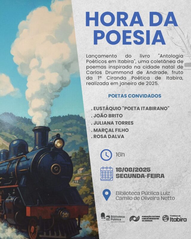Nesta edição especial, o evento celebra o lançamento da Antologia Poéticos em Itabira, obra que nasceu da 1ª Ciranda Poética da cidade e reúne versos de 32 poetas de diversas regiões do Brasil, todos inspirados na terra natal de Carlos Drummond de Andrade. Entre os autores presentes na roda de palavras estarão Marçal Filho, João Brito, Eustáquio “Poeta Itabirano”, Juliana Torres e Rosa Dalva.